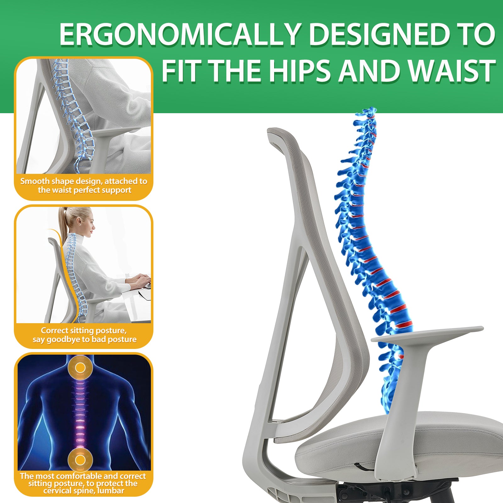- 【MESH OFFICE CHAIR】 Gray office chair brings a sense of luxurious atmosphere, kano office chair frame uses new materials plus brazing, strong, and anti-aging, the back of the chair uses a high-quality mesh fabric finish, the seat bag fabric uses high elastic fabric with super soft shaped cotton (new design seat fabric cover zipper design, removable and washable).