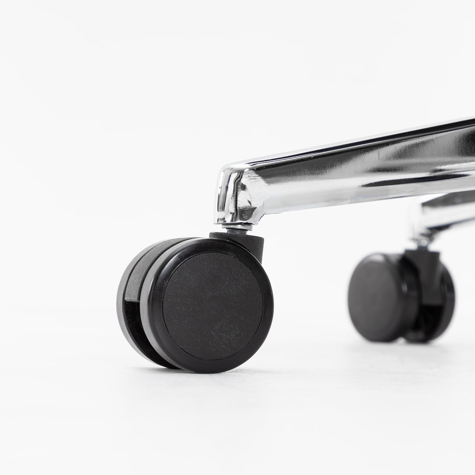 - Heavy Duty Base with End Caps, Dual Wheel Casters.