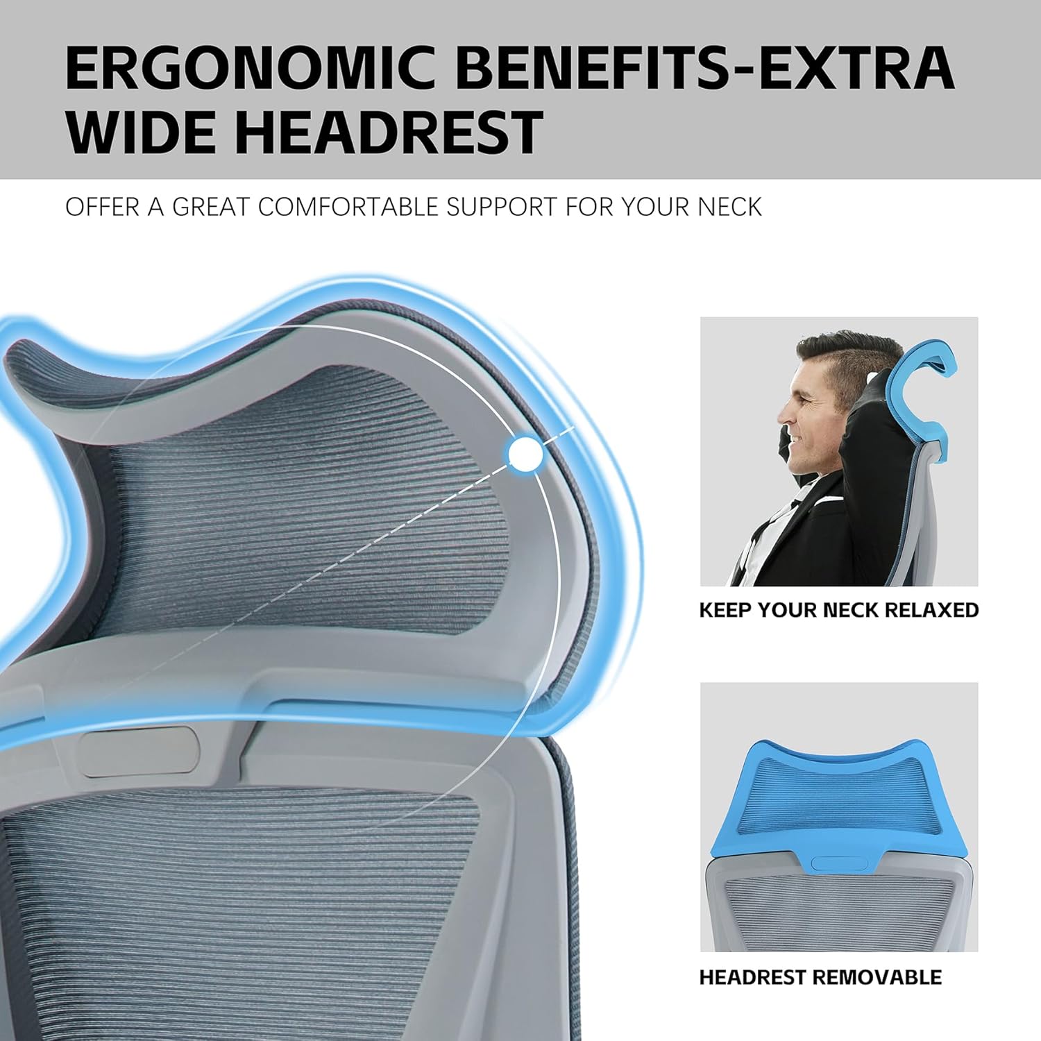 - 【Comfortable Chair】Elevate your seating experience with a thicker cushion made from high-density elastic sponge and breathable mesh fabric. The wider headrest provides plush comfort for your head and neck during extended work sessions, offering exceptional softness and support for long hours at your desk.