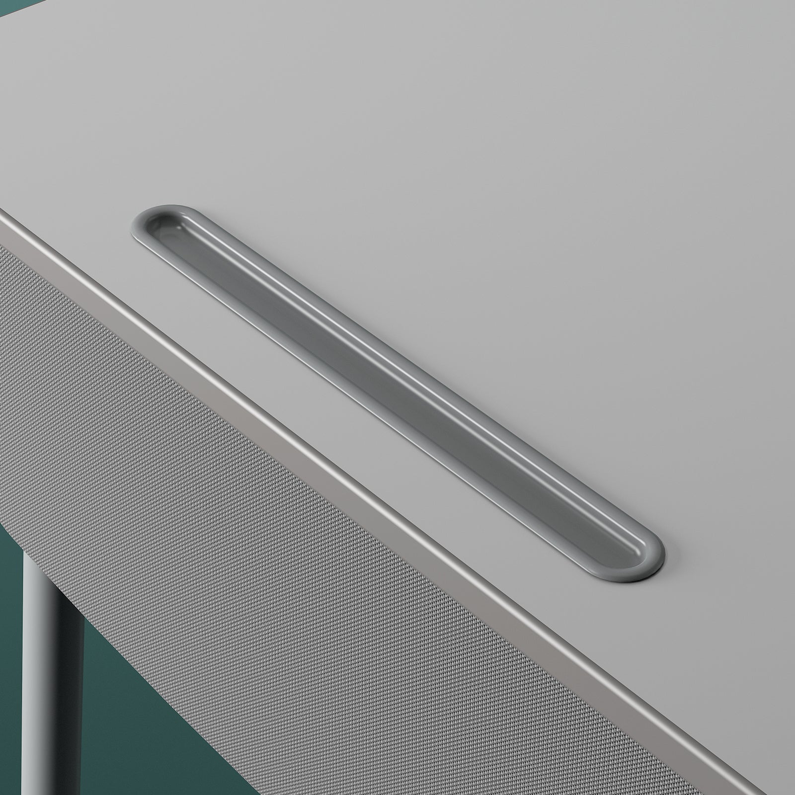 Inside the desk drawer, there are grooves and holes to help water drain out easily. If a water bottle spills, the water can quickly drain away, keeping the drawer dry and the desk clean. - Leg Frame: Curved and strong design for stable support.