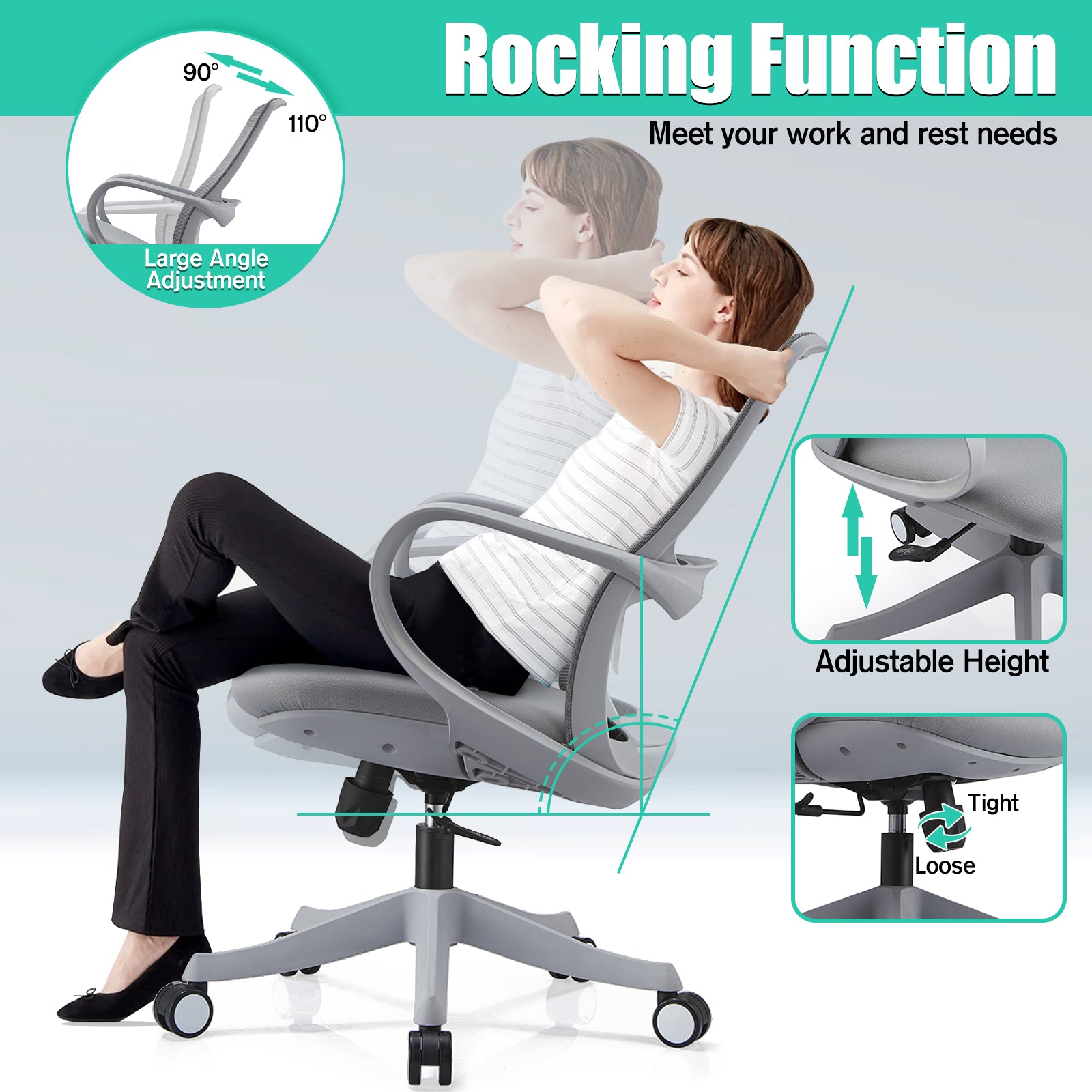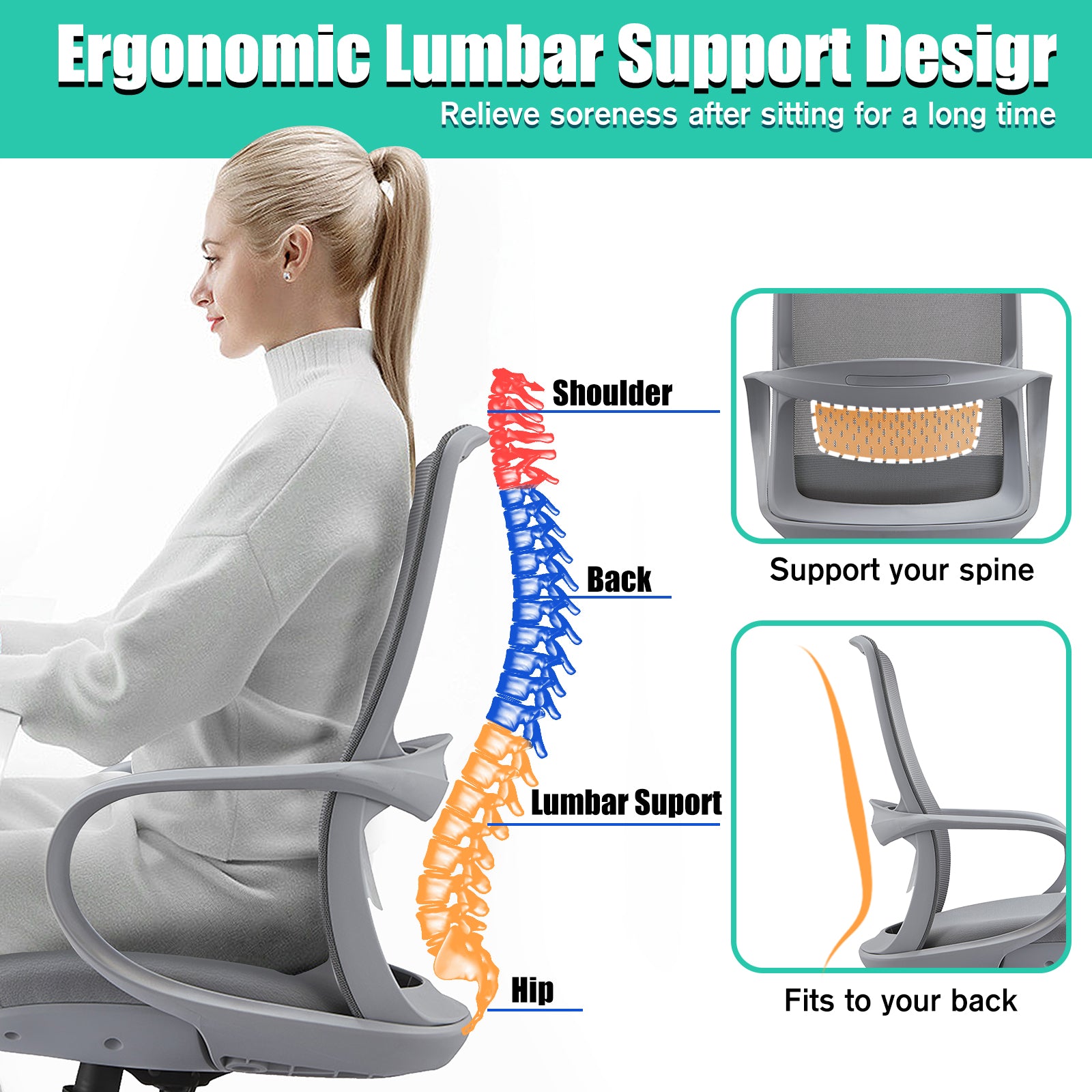 - 【Ergonomic Chair】👉 Designed with ergonomic T-shaped lumbar support to fit your back better. No matter how you sit, our mesh office chair can provide the right support to protect your spine, relax your muscles and relieve back pain.