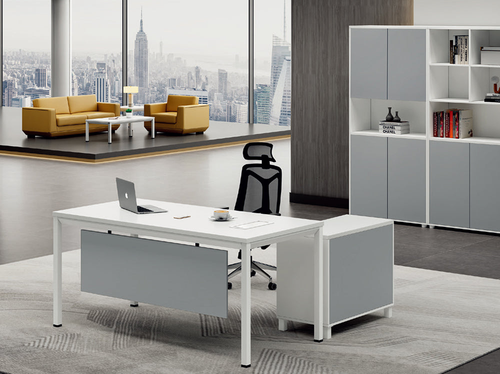 - Modern white computer desk with 1 under desk privacy panel, size: 1200*400*16mm