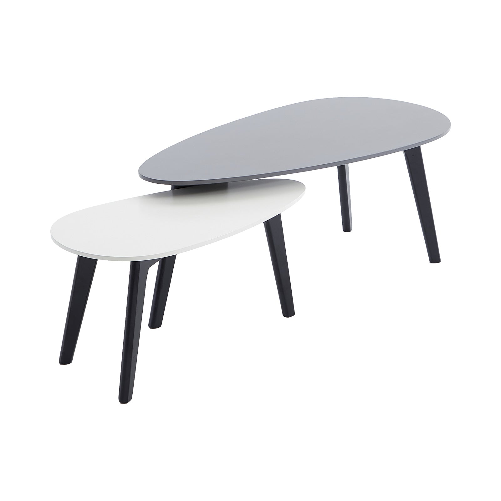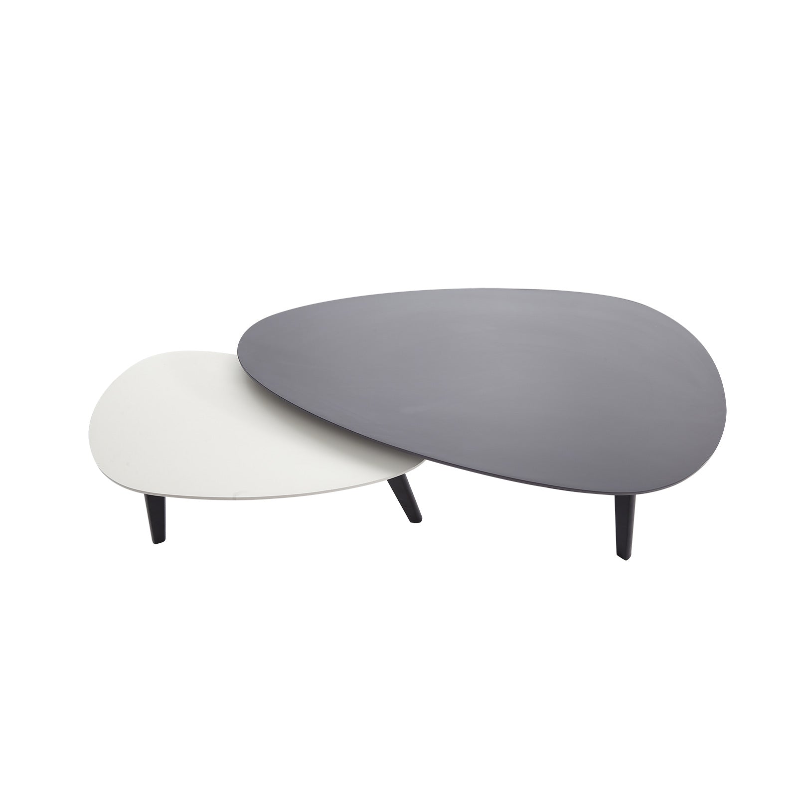 - Compact Design: This coffee table set design is compact and lightweight. It comes with one grey table and one smaller white table. The uneven distribution enhances the sense of space and art. It is up to you to use the tables separately or stack them together if you need more space.