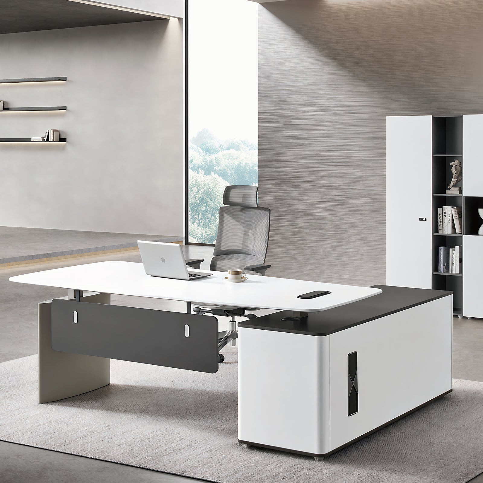 Adjustable Height L-Shaped Standing Desk With Storage Cabinet