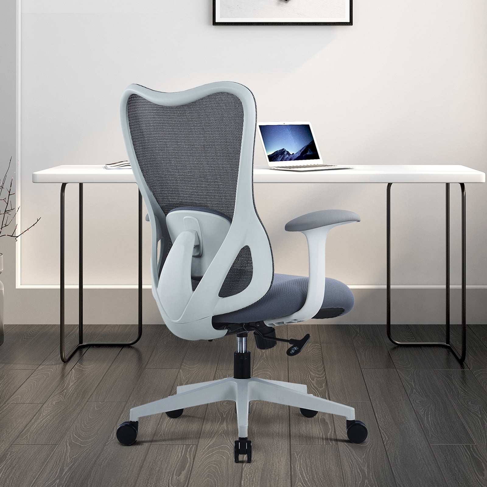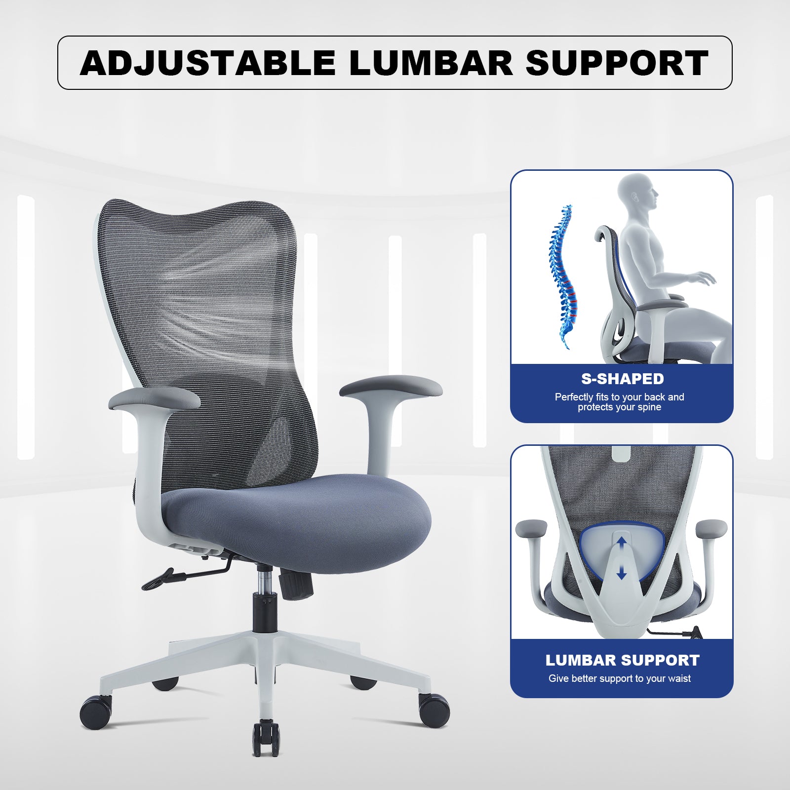 VOFFOV® Mesh Back Desk Chair for Home & Office Adjustable Lumbar Support,Gray