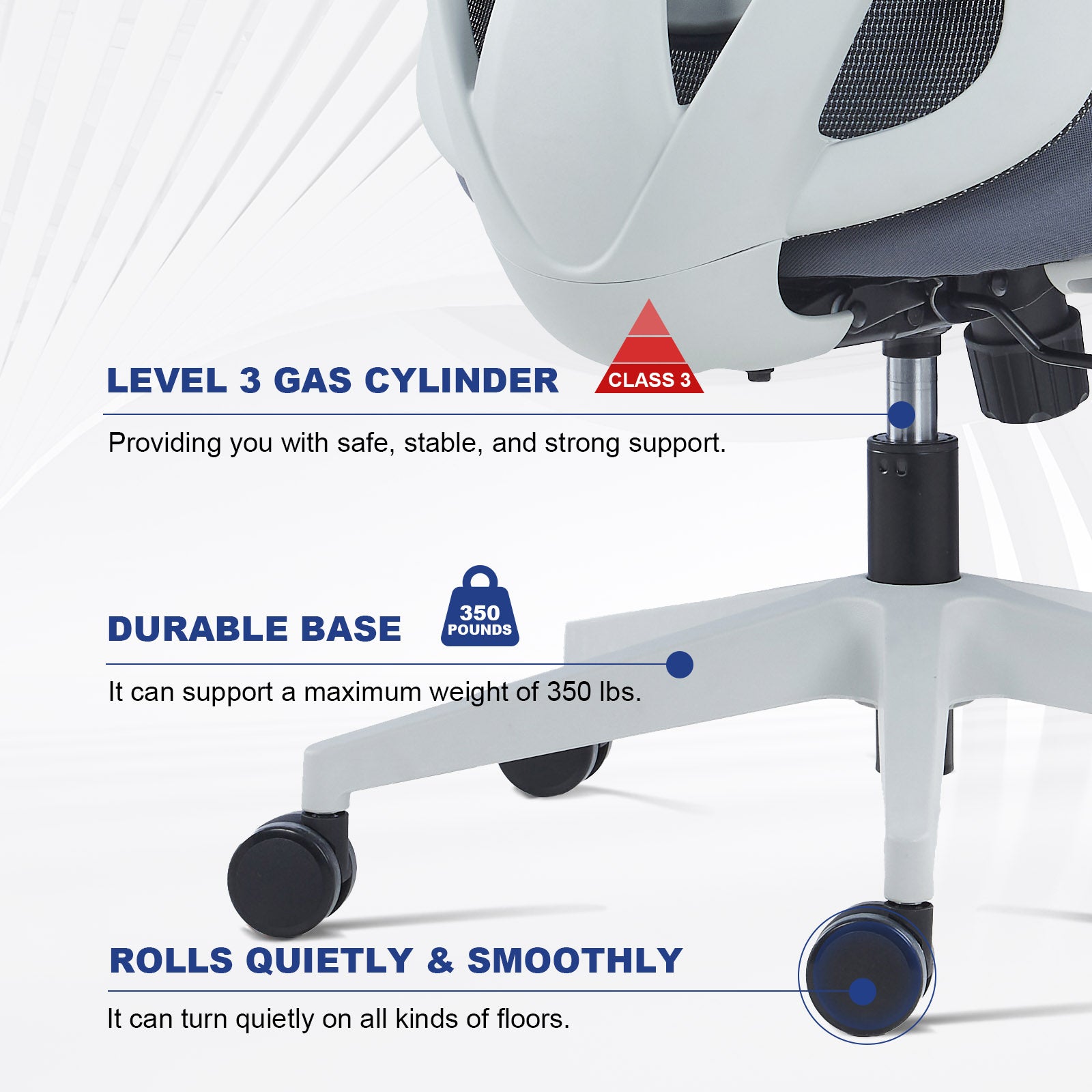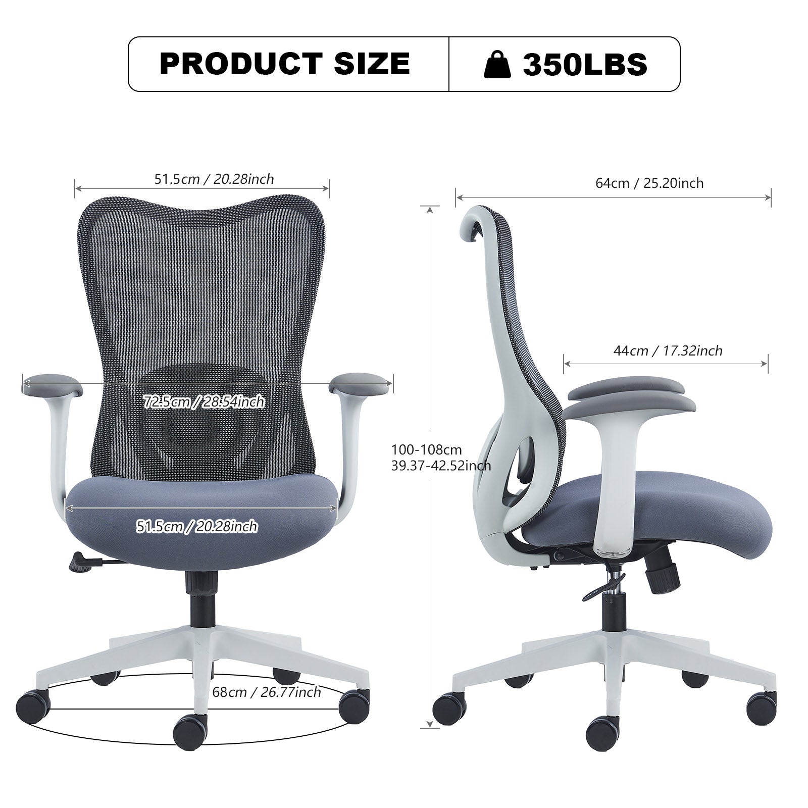 - 【Reliable Stability】With a sturdy base and a weight capacity of 300 lbs, this office chair is built to last. Enjoy smooth height adjustment from 17″ to 20.5″ tall with the reliable height-adjustable gas lift. Freely move the chair 360° without distraction thanks to silent rolling casters.