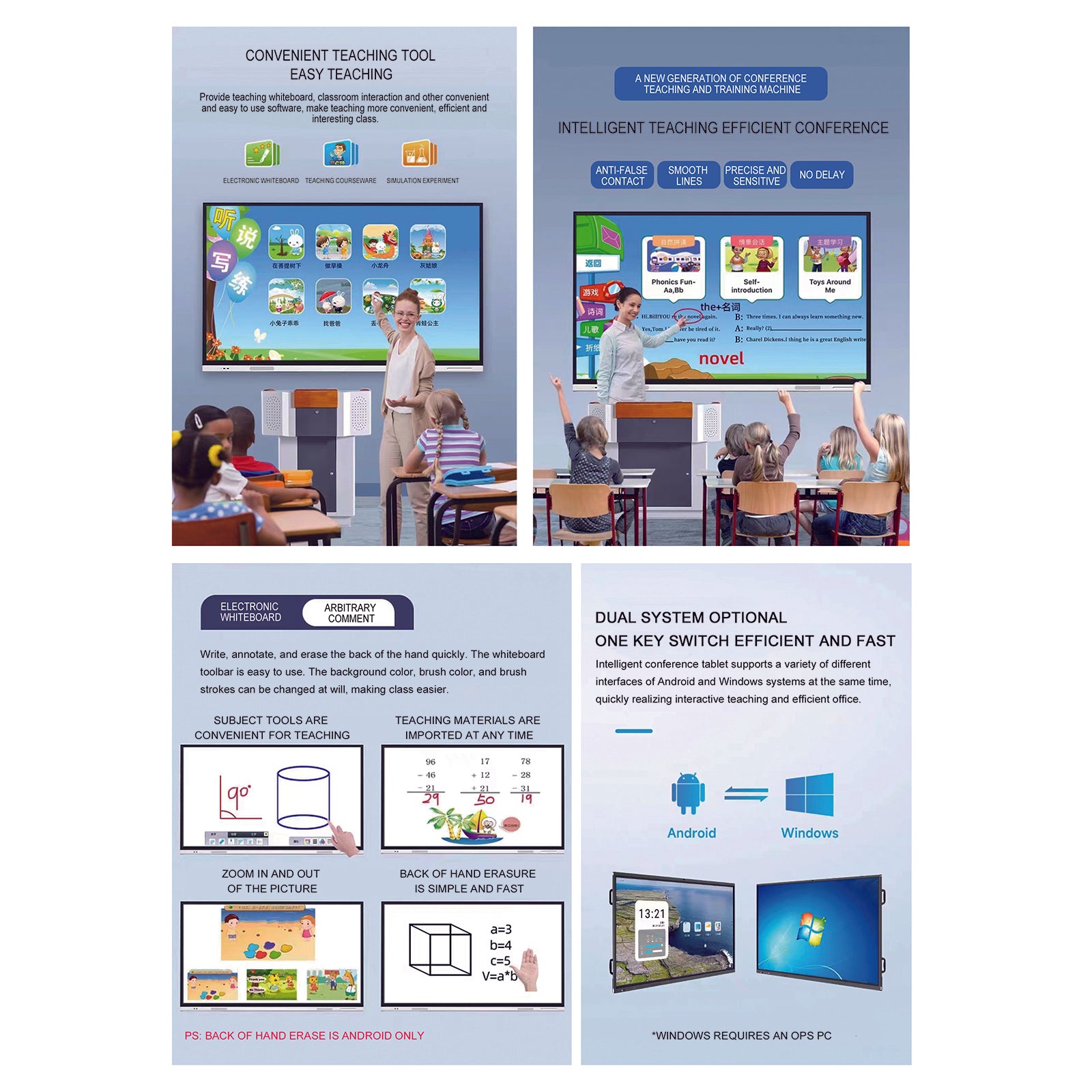 - Independent cameras and Windows operating systems can be added to this Interactive Smart Whiteboard. Please contact our sales support for your need.