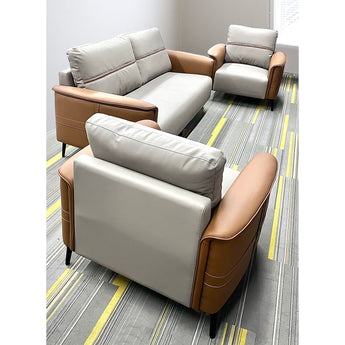 - Premium Leather Upholstery: The seat cushions, backrests, and armrests of the sofa are upholstered with high quality PU leather, ensuring a luxurious and durable finish that is both soft to the touch and resistant to wear and tear.