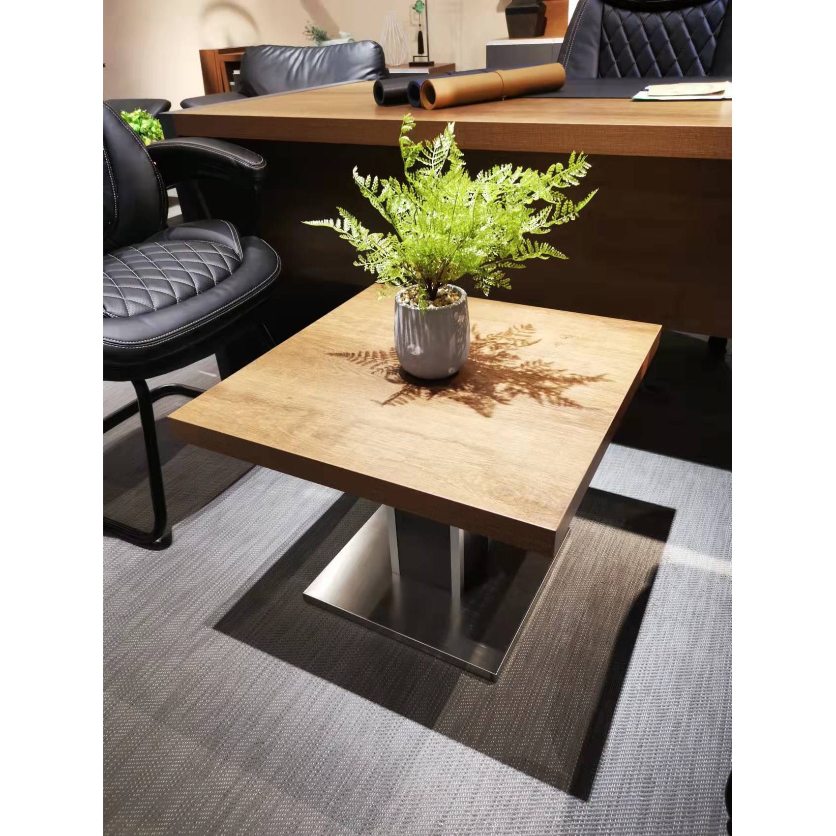 - Square shape table with cylinder base